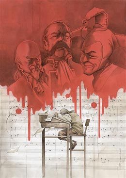 Treba izdvojiti i bogatu paletu Milana Antanasijevića, koja sa uspehom dočarava naizmenično toplinu unutrašnjih prostorija, i spoljašnju beživotnost snegom i ledom okovanog Beča. Lep detalj su Mocartove partiture koje presecaju prostor između kaiševa na svakoj strani u drugoj polovini albuma, kao neka vrsta pisanog saundtreka za sličice stripa, čime izazivaju poseban osećaj napetosti.